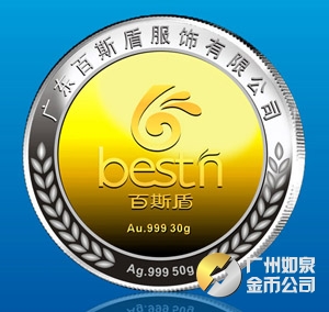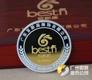 2013年11月廣東百斯盾公司銀包金紀(jì)念幣訂做制做銀鑲金紀(jì)念章