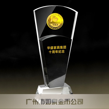 中山華盛集公司周年慶典制作純金紀念幣鑲水晶擺件
