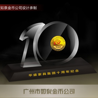 中山華盛公司周年慶定制純金紀念幣鑲水晶