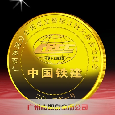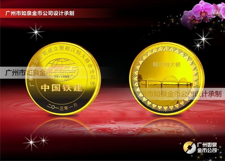 定制中國鐵建大橋合龍通車定制紀念千足金金幣制作