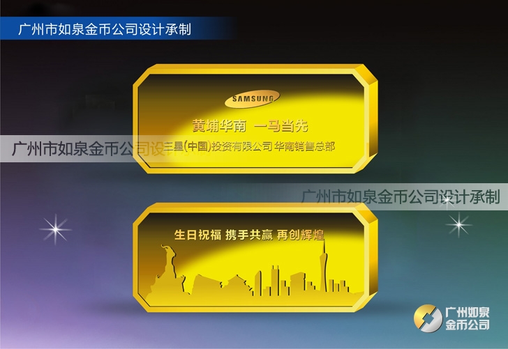 定制三星公司紀(jì)念金條定制純金金條制作黃金金條