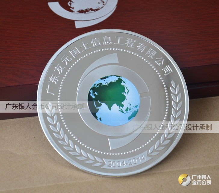 2014年5月:定制廣東友元定制水晶鑲紀(jì)念銀幣定制