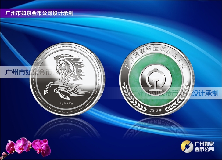 定制廣鐵集團制做銀紀念幣定制純銀鑲玉紀念幣
