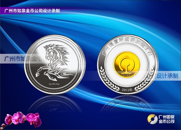 廣州市如泉金幣公司依托上海造幣廠和深圳國寶造幣廠等造幣公司以及金銀制品廠,設計定做紀念幣、紀念章、金銀幣、金銀章、金銀條,采用造幣工藝、選用千足金銀,個性定制金幣、定做銀幣、訂做金條、訂制銀條、制作紀念銀幣、制造紀念金幣、加工紀念銀章、生產紀念金章,純金純銀鑄造、全部國檢、權威檢測。