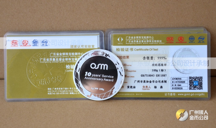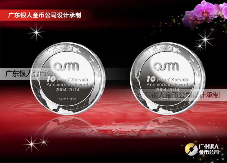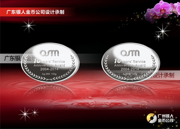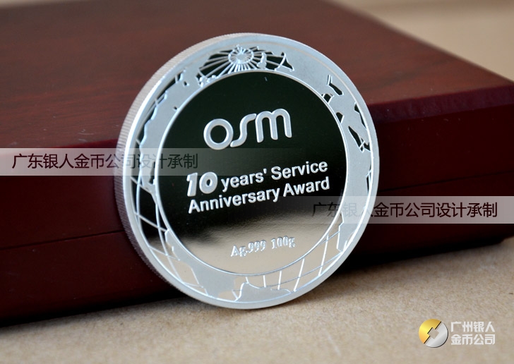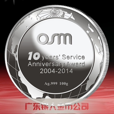定制瑞典OSM Group-尚科思表彰在崗工作滿十周年服務(wù)獎純銀紀(jì)念章