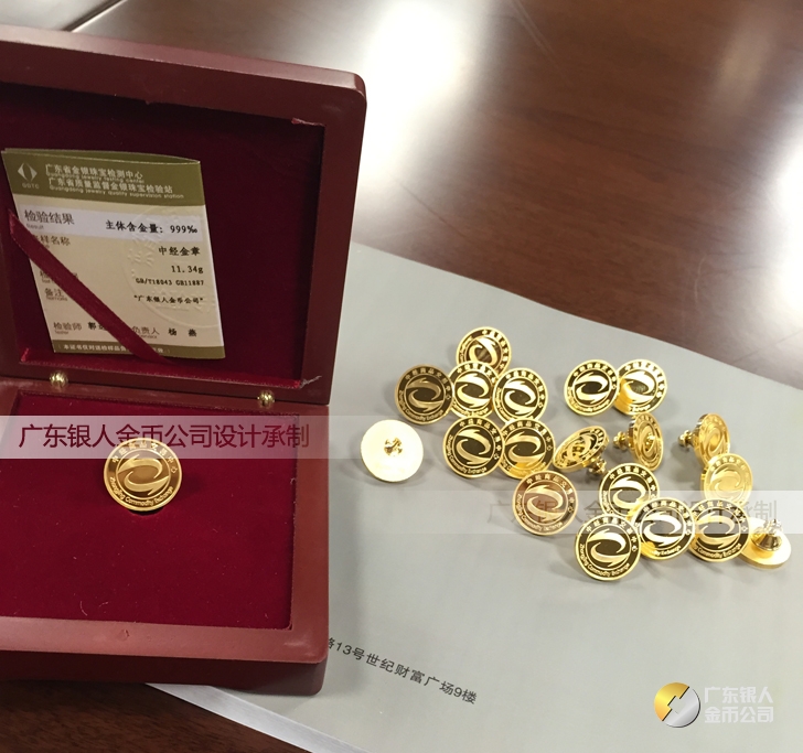2015年3月定制 中經商品交易中心純金徽章、萬達金銀中心千足金徽章