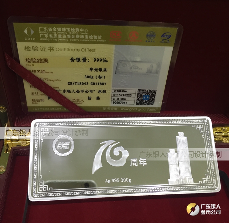 廣東銀人金幣公司承接客戶個(gè)性化定制的金銀幣、金銀章、金銀條、金銀牌、金銀盤均由國家質(zhì)監(jiān)部門、嚴(yán)格檢測、權(quán)威鑒定: