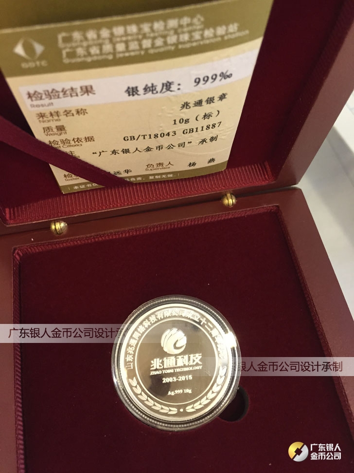 2015年6月定做 山東兆通公司滿三年五年十年銀質紀念幣定做