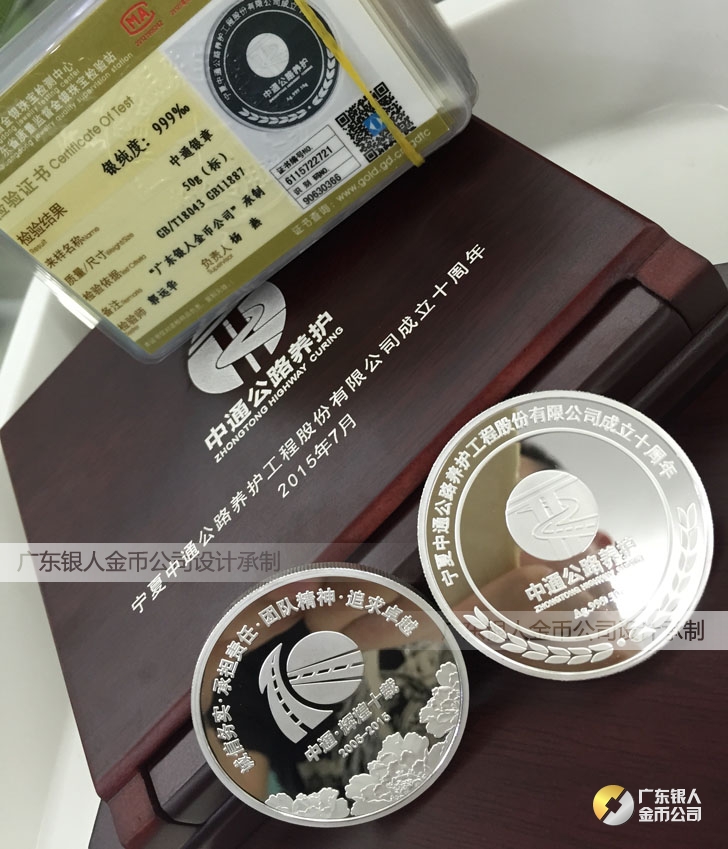 2015年7月訂做 寧夏中通公路彩銀幣定制彩色紀念幣制作