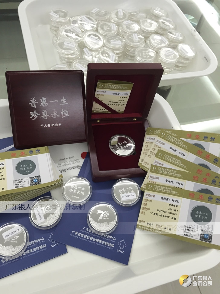 廣東銀人金幣公司承接客戶個性化定制的金銀幣、金銀章、金銀條、金銀牌、金銀盤均由國家質監部門、嚴格檢測、權威鑒定: