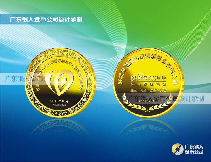 2015年9月定制 深圳國(guó)康私人醫(yī)生集團(tuán)十周年金幣定制