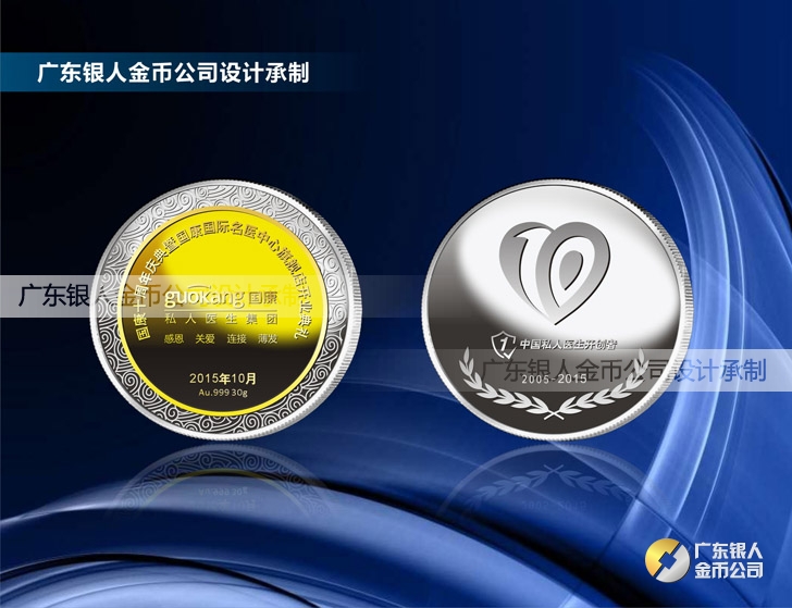 2015年9月定制 深圳國(guó)康公司純銀紀(jì)念章定制、純銀幣定制