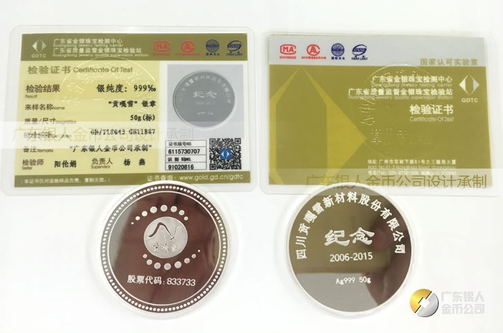 2015年10月定做 四川貢嘎雪股票發(fā)行上市純銀紀(jì)念幣定做