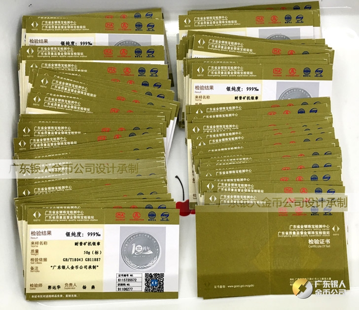 廣東銀人金幣公司承接客戶個性化定制的金銀幣、金銀章、金銀條、金銀牌、金銀盤均由國家質監部門、嚴格檢測、權威鑒定: