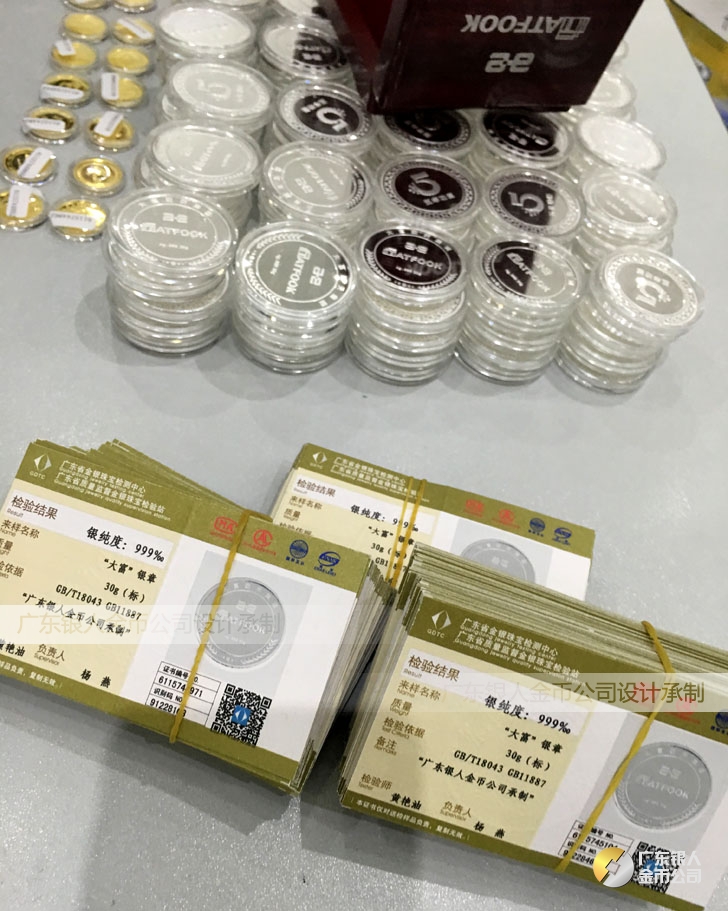 廣東銀人金幣公司承接客戶個性化定制的金銀幣、金銀章、金銀條、金銀牌、金銀盤均由國家質(zhì)監(jiān)部門、嚴格檢測、權威鑒定:
