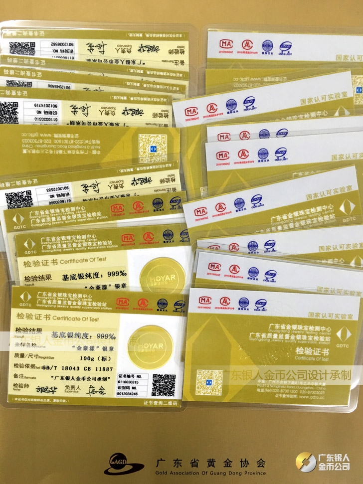 廣東銀人金幣公司承接客戶個性化定制的金銀幣、金銀章、金銀條、金銀牌、金銀盤均由國家質(zhì)監(jiān)部門、嚴(yán)格檢測、權(quán)威鑒定: