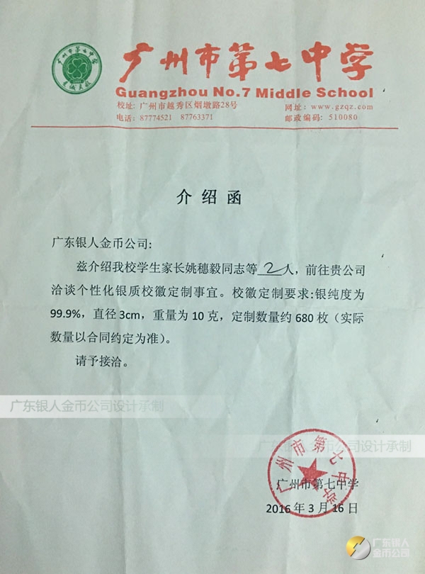2016年4月定制 廣州市第七中學校慶128周年純銀紀念章定制