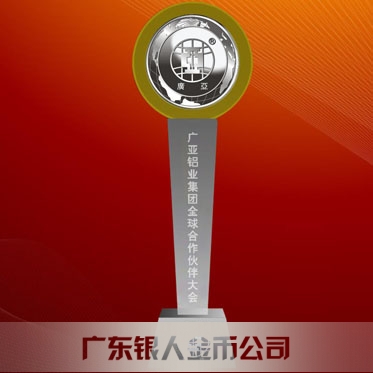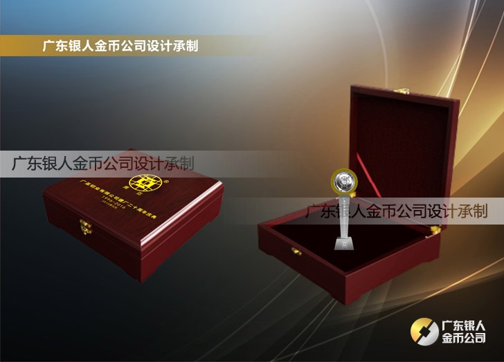 2016年4月定制 廣亞鋁材公司周年慶年會金銀幣鑲水晶擺件
