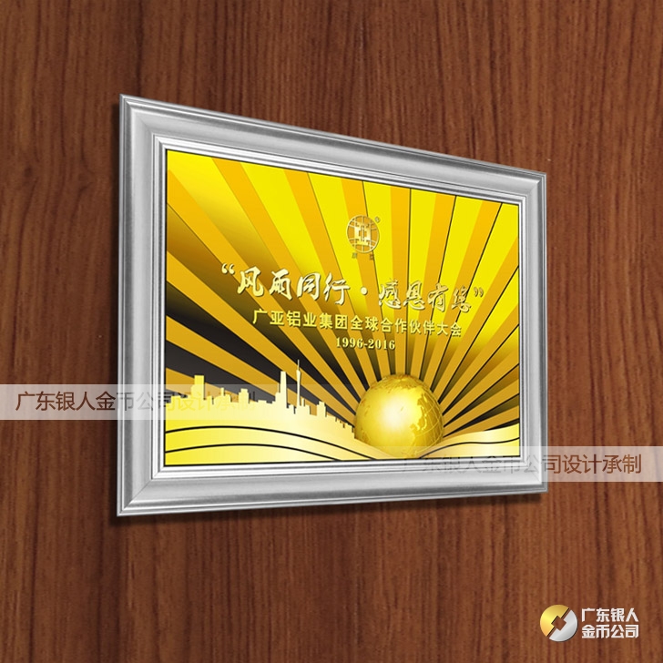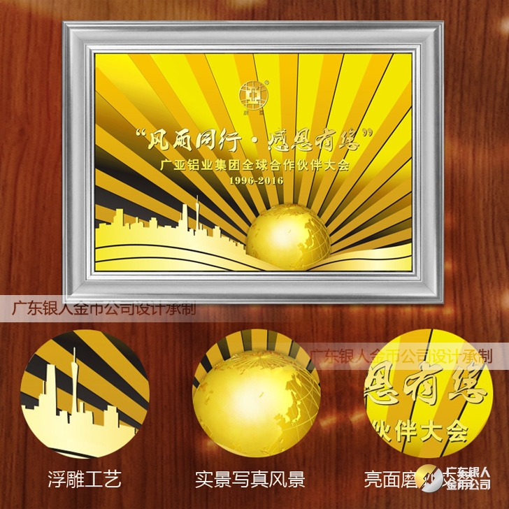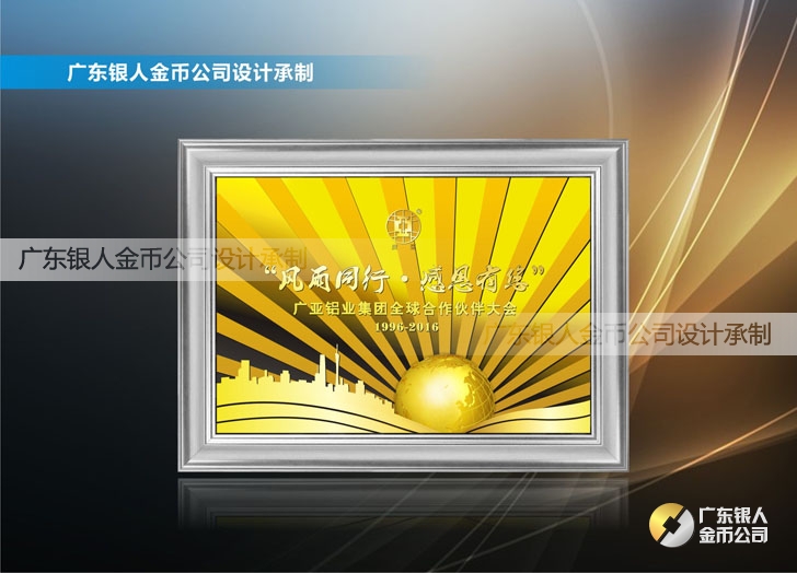 2016年4月定制 廣亞鋁業全球合作伙伴純金金畫浮雕金箔畫