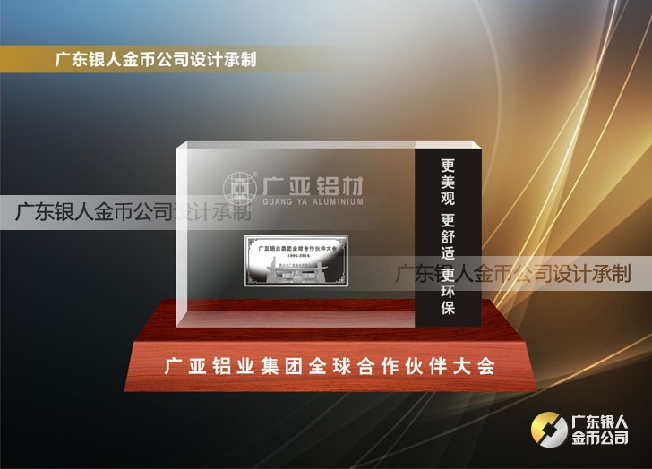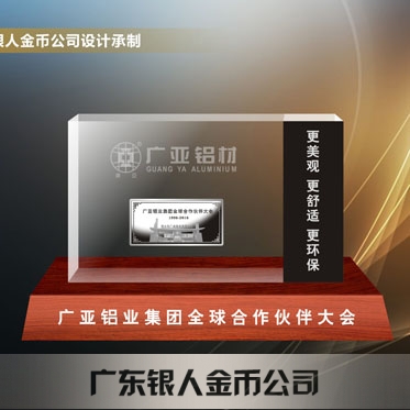 2016年4月定制 廣亞全球合作伙伴大會紀念銀條鑲擺件定制