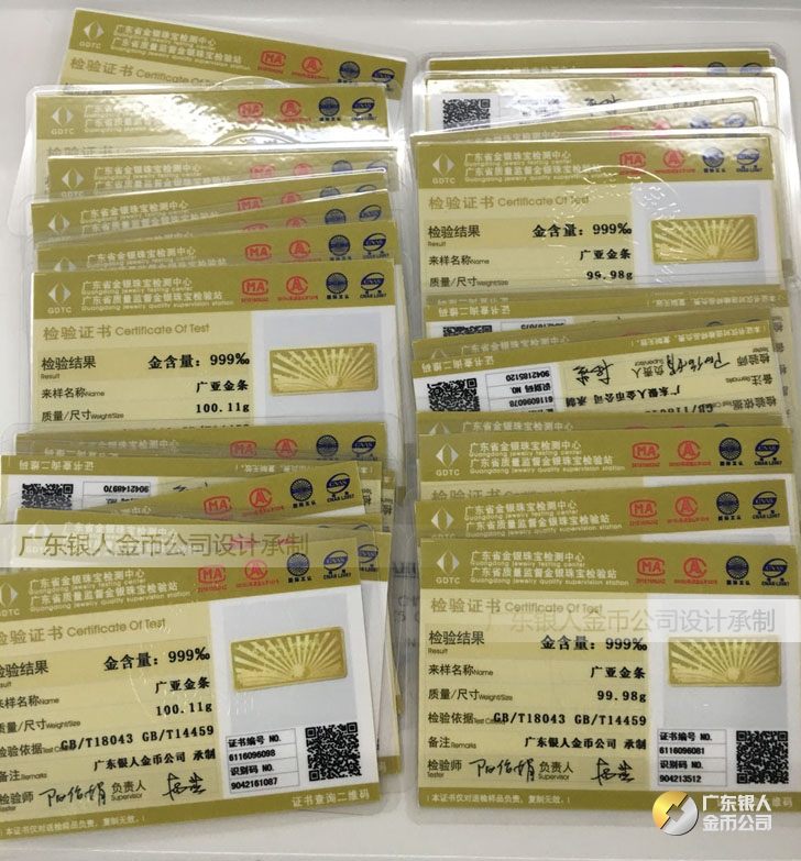 廣東銀人金幣公司承接客戶個性化定制的金銀幣、金銀章、金銀條、金銀牌、金銀盤均由國家質監部門、嚴格檢測、權威鑒定: