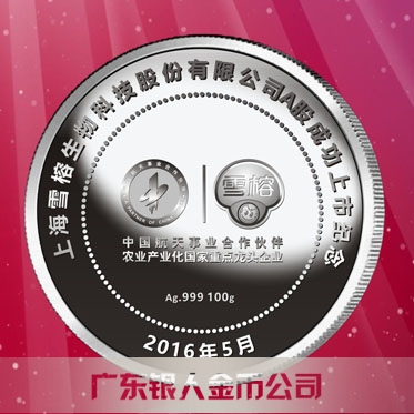 2016年4月定制 上海雪榕公司A股成功市純銀紀念幣定制