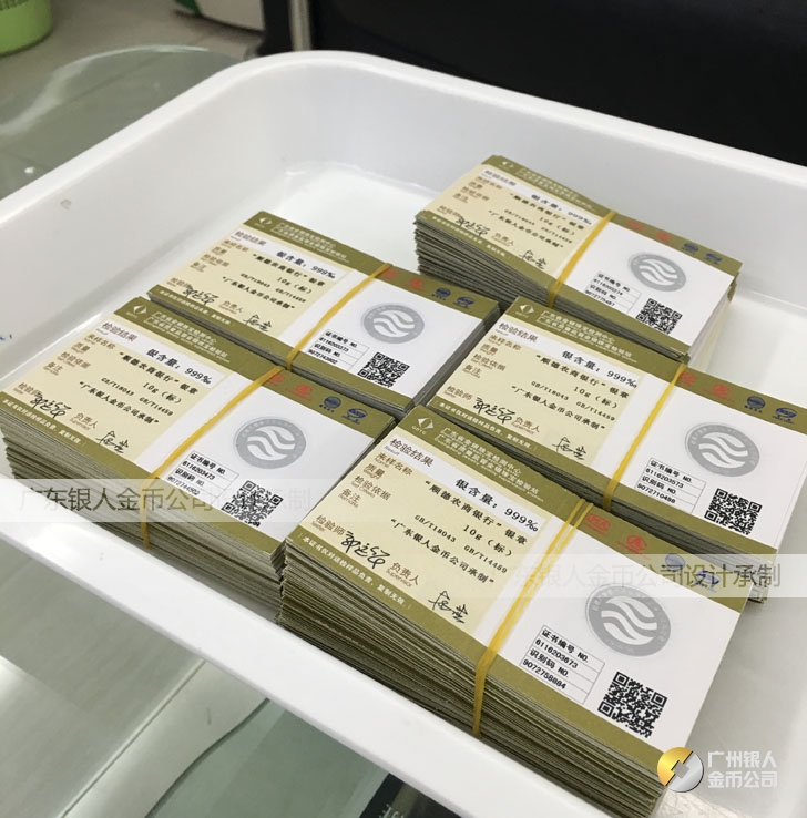廣東銀人金幣公司承接客戶個性化定制的金銀幣、金銀章、金銀條、金銀牌、金銀盤均由國家質監部門、嚴格檢測、權威鑒定: