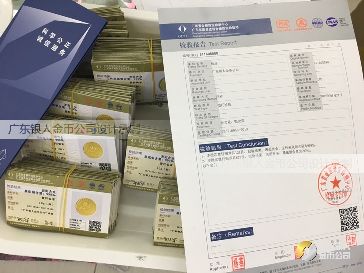 廣東銀人金幣公司承接客戶個(gè)性化定制的金銀幣、金銀章、金銀條、金銀牌、金銀盤(pán)均由國(guó)家質(zhì)監(jiān)部門(mén)、嚴(yán)格檢測(cè)、權(quán)威鑒定: