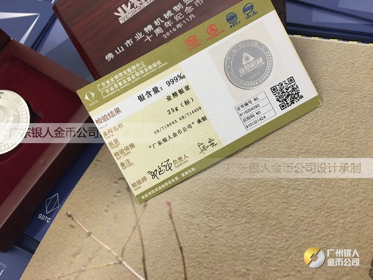 廣東銀人金幣公司承接客戶(hù)個(gè)性化定制的金銀幣、金銀章、金銀條、金銀牌、金銀盤(pán)均由國(guó)家質(zhì)監(jiān)部門(mén)、嚴(yán)格檢測(cè)、權(quán)威鑒定: