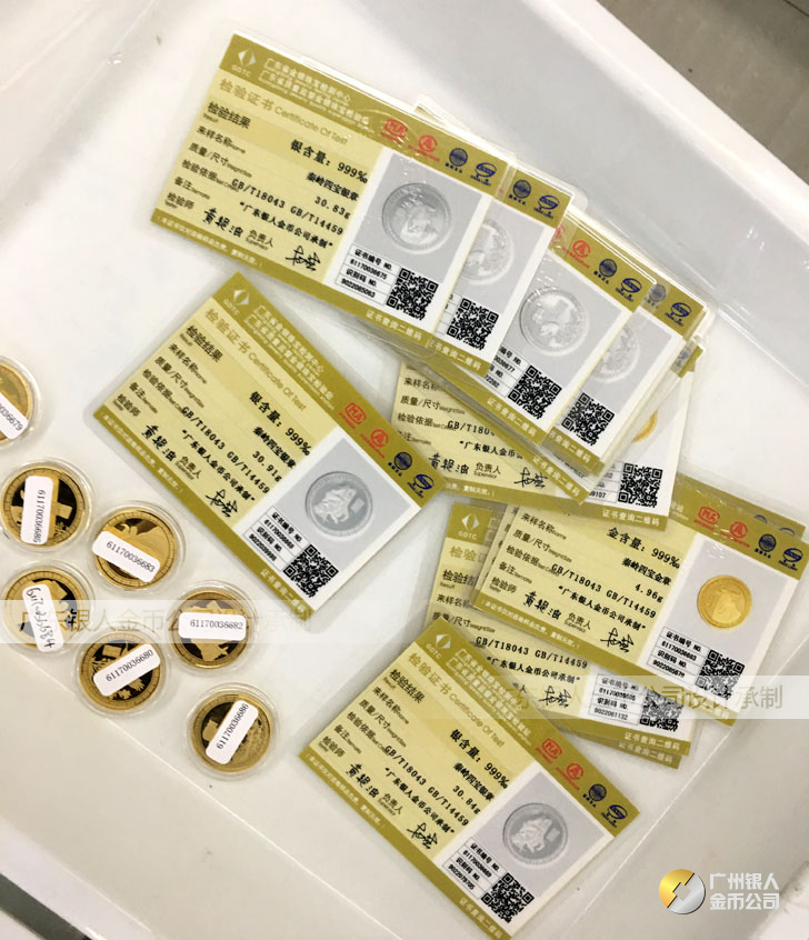 廣東銀人金幣公司承接客戶個(gè)性化定制的金銀幣、金銀章、金銀條、金銀牌、金銀盤均由國家質(zhì)監(jiān)部門、嚴(yán)格檢測(cè)、權(quán)威鑒定: