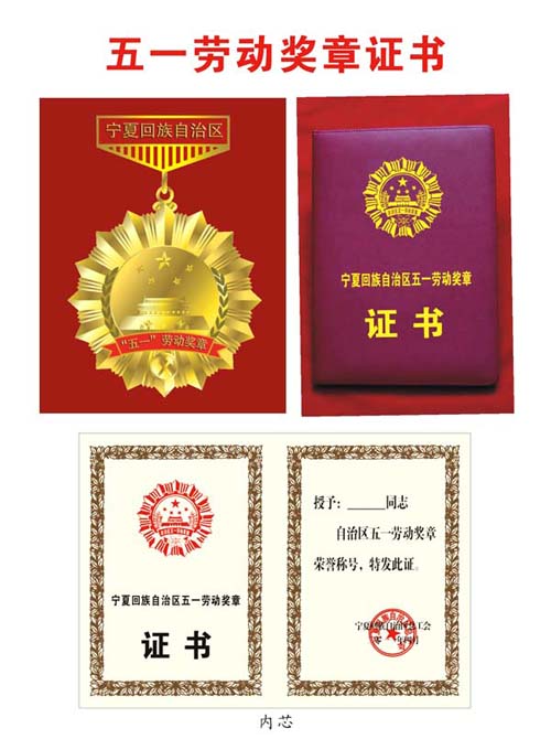 2011年4月 寧夏回族自冶區五一勞動獎章定制
