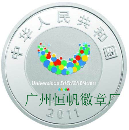 用國家貨幣的形式來表現體壇盛事已不是第一次,在保持這一經典系列紀念幣共同點的同時,如何創新出彩,給人以全新的視覺盛宴,深圳第26屆世界大學生夏季運動會金銀紀念幣給出了有力的答案。全套紀念幣正面共用同一圖案,為本屆大運會會徽(局部彩色)圖案。會徽是時代特征、體育特點、舉辦地精髓文化及理念的共同體現。畫面以同心的兩個圓展開,外圓內的“國名、年號”在鏡面的映襯下,清晰簡潔。