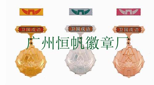 (從左至右分別為衛(wèi)國戍邊金質(zhì)紀(jì)念章、衛(wèi)國戍邊銀質(zhì)紀(jì)念章、衛(wèi)國戍邊銅質(zhì)紀(jì)念章。)