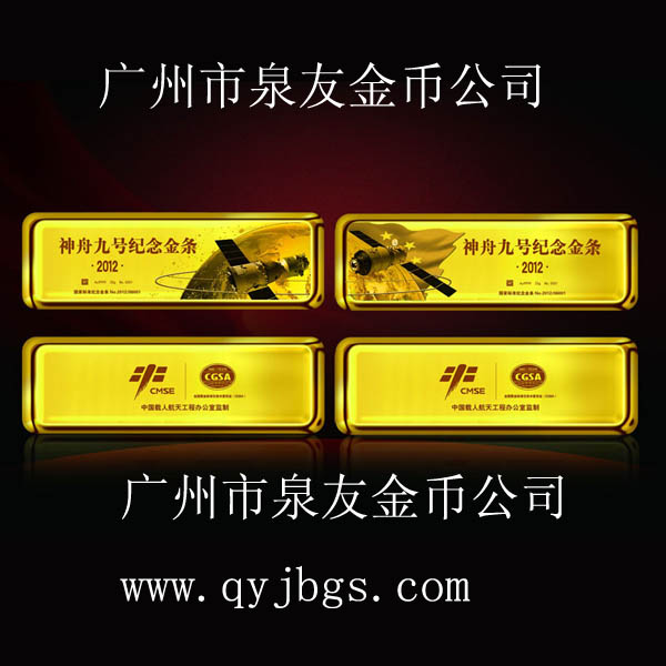 昨日,“神舟九號(hào)紀(jì)念金條”在鄭州金鑫珠寶正弘店首發(fā)。神九紀(jì)念金條全套含2根25克Au9999金條,兩根金條正面均鐫刻有“國(guó)家標(biāo)準(zhǔn)紀(jì)念金條”字樣和唯一編號(hào),背面均鐫刻有“中國(guó)載人航天工程辦公室監(jiān)制”字樣,全國(guó)僅限量發(fā)行2012套。