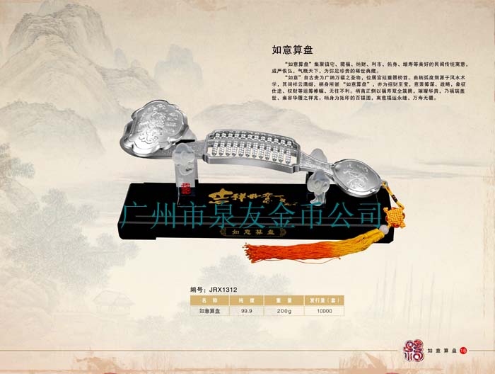 純銀如意算盤、純銀吉祥如意、銀質如意算盤(圖)