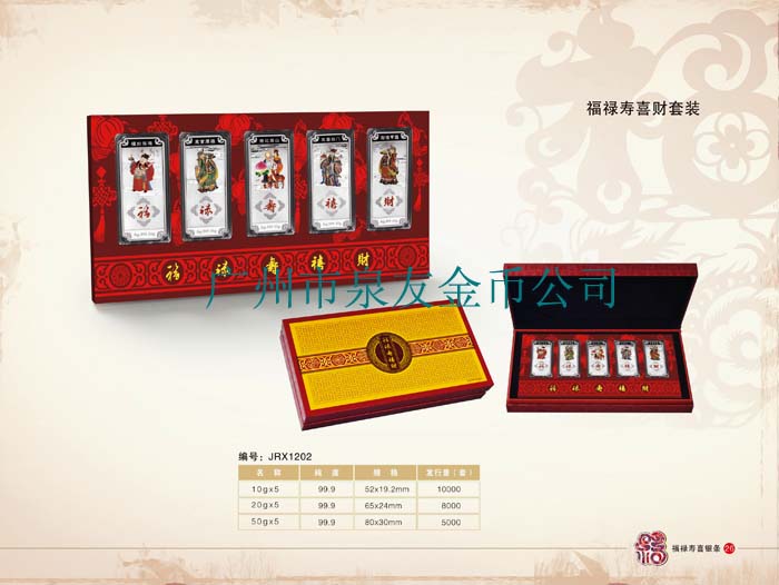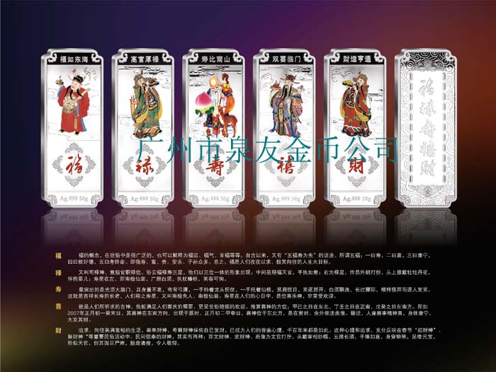 福祿壽喜財(cái)銀條、福祿壽喜財(cái)彩色銀條、五福彩銀章(圖)