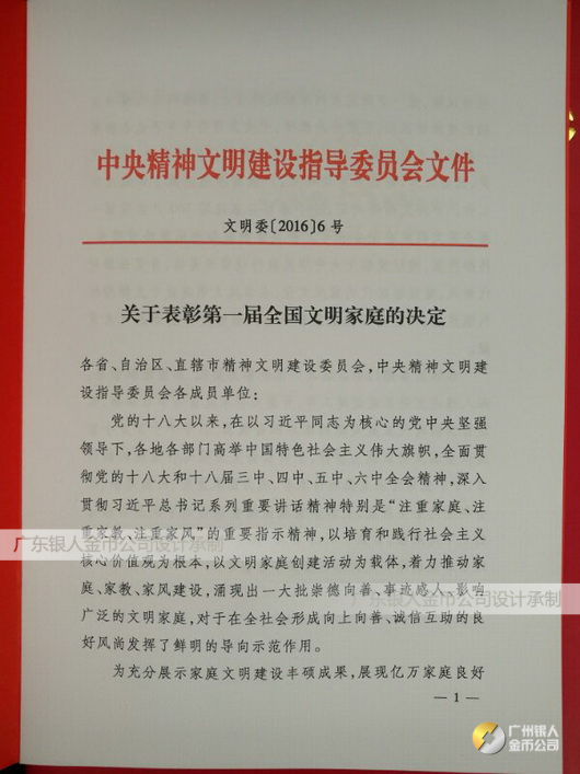 關于表彰第一屆全國文明家庭的決定名單-獎牌證書(圖)