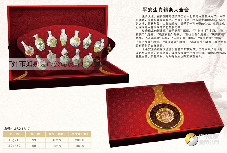 廣州市如泉金幣公司依托上海造幣廠和深圳國寶造幣廠等造幣公司以及金銀制品廠,設計定做紀念幣、紀念章、金銀幣、金銀章、金銀條,采用造幣工藝、選用千足金銀,個性定制金幣、定做銀幣、訂做金條、訂制銀條、制作紀念銀幣、制造紀念金幣、加工紀念銀章、生產紀念金章,純金純銀鑄造、全部國檢、權威檢測。
