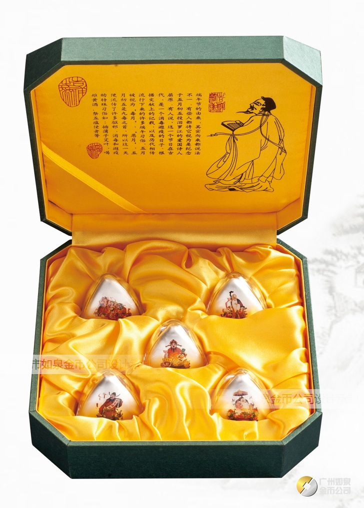 端午節(jié)銀粽子禮盒套裝,Ag.999純銀銀粽子個性定制