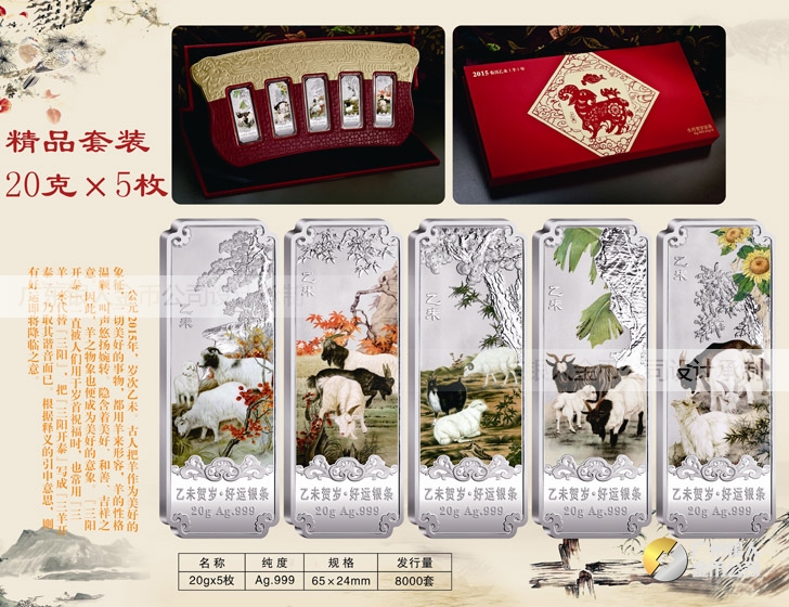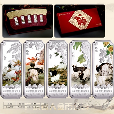 【Au.999純銀羊年賀歲銀條重量規格】 5克x5根、10克x5根、20克x5根盒裝、套裝