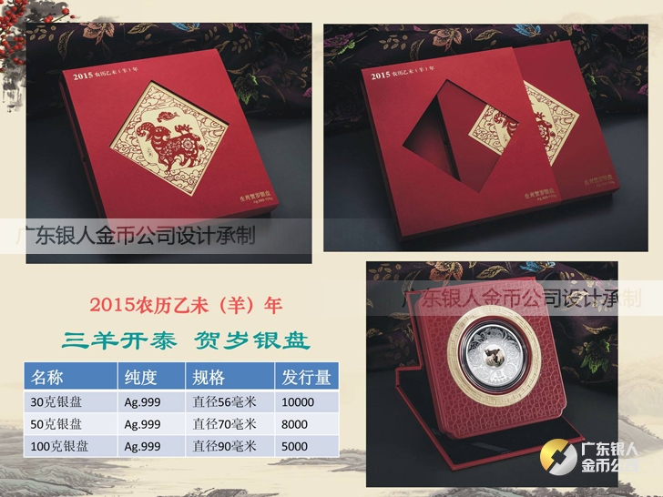 2015羊年賀歲銀盤訂做三羊開泰純銀銀盤定制