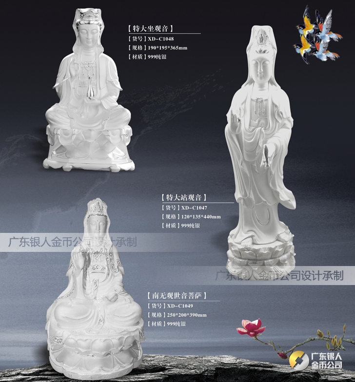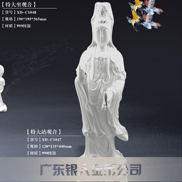 純銀觀音像工藝擺件、純銀觀音菩薩擺件